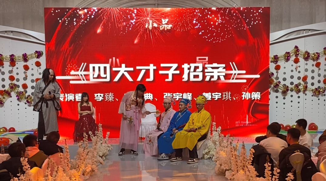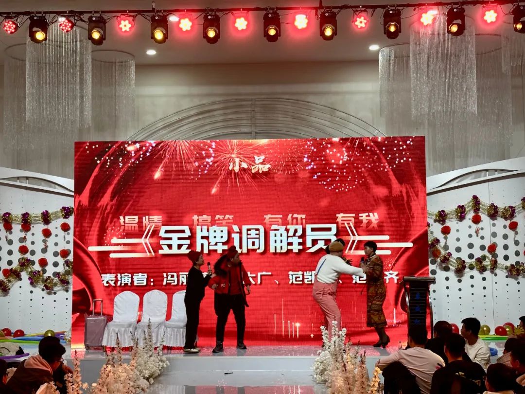 薈萃星光,觥籌熠熠,隨著頒獎典禮的結(jié)束,晚會在瀟灑的開場舞《驍》中正式拉開帷幕,隨后,公司各部門工作人員為大家?guī)砹宋乃囇莩?,歌曲演唱《笨小孩》、《海芋戀》、《著魔》,黑管獨奏《上海灘》,舞蹈表演《科目三》、《桃花朵朵開》,小品節(jié)目《四大才子招親》、《金牌調(diào)解員》,大合唱《壯志在我胸》,一段段精彩紛呈的節(jié)目收獲了臺下觀眾源源不斷的掌聲與歡呼聲,展現(xiàn)了泰威人蓬勃向上的青春風采。其中,小品《金牌調(diào)解員》的演員們,憑借著精湛、搞笑的演技,得到了全場觀眾們的認可,小品被評為全場最佳節(jié)目。